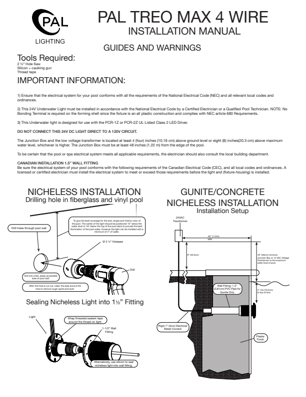 To get the best performance from your PAL TREO Max pool light, the following equipment may be required depending on your lighting setup.
